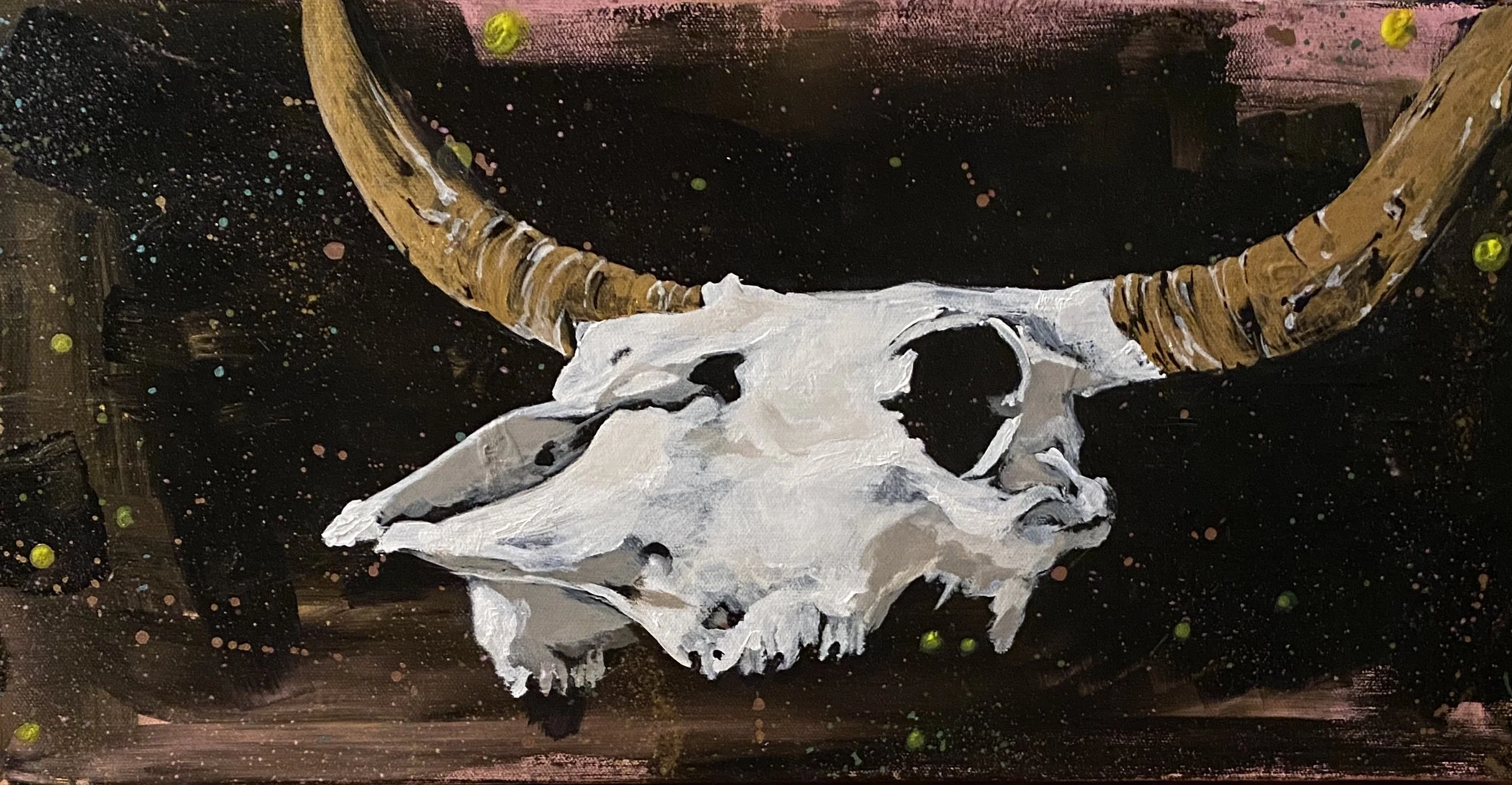 Skull Stroke · acrylic, charcoal · 16 x 16” · 2022