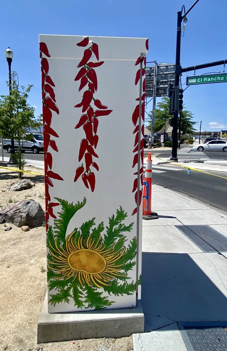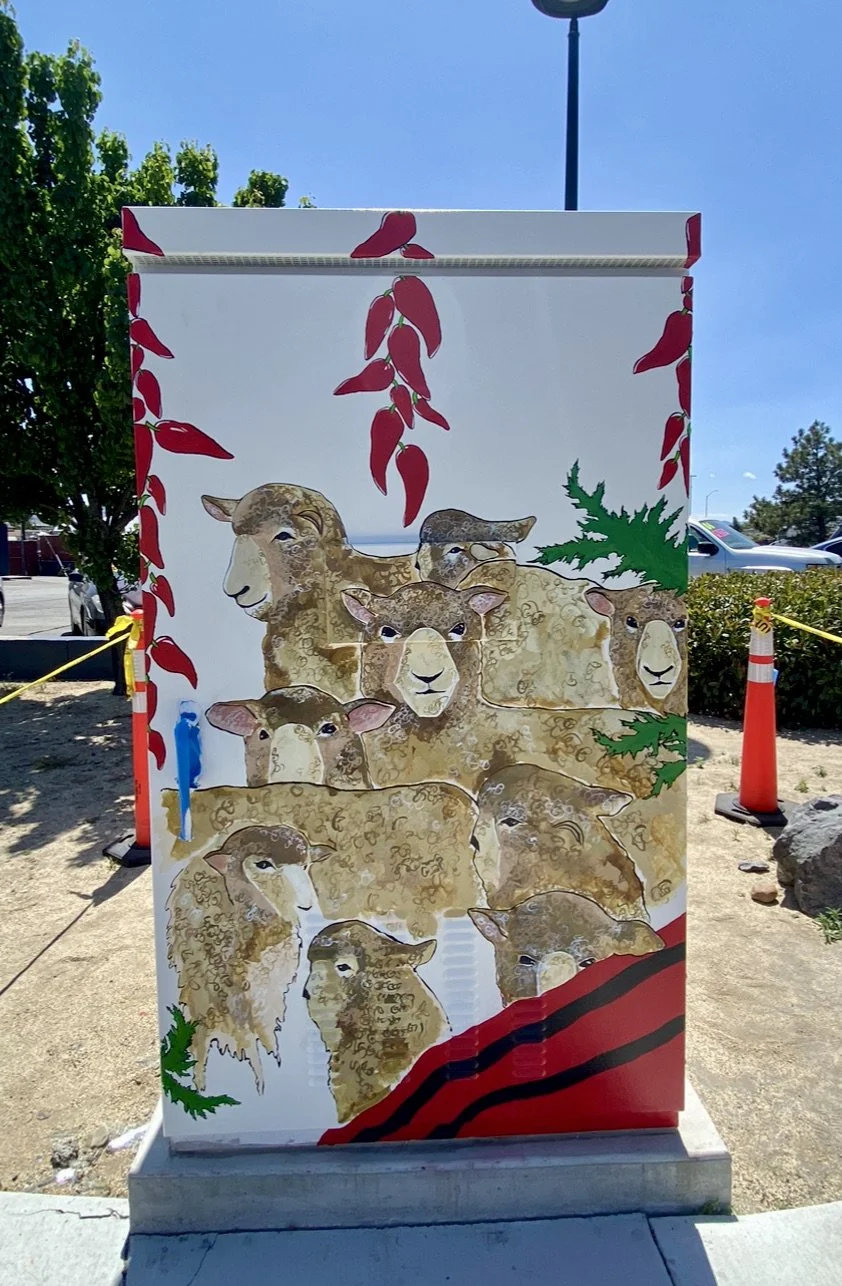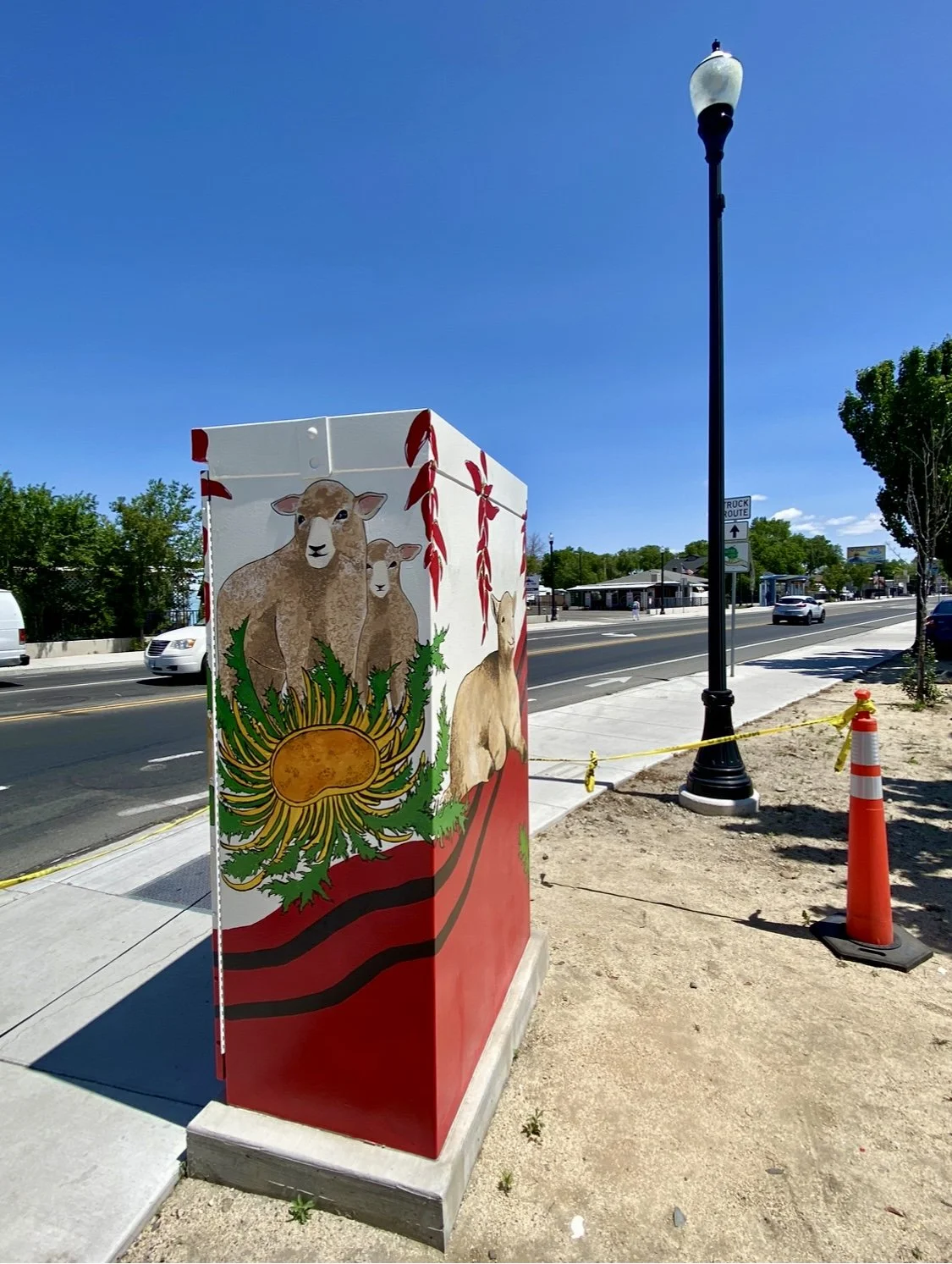 A Dance with the Basque - Signal Box · Acrylic on Metal · Prater Way & El Rancho Dr. · Sparks, NV · 44 x 26.5 x 78” · 2024