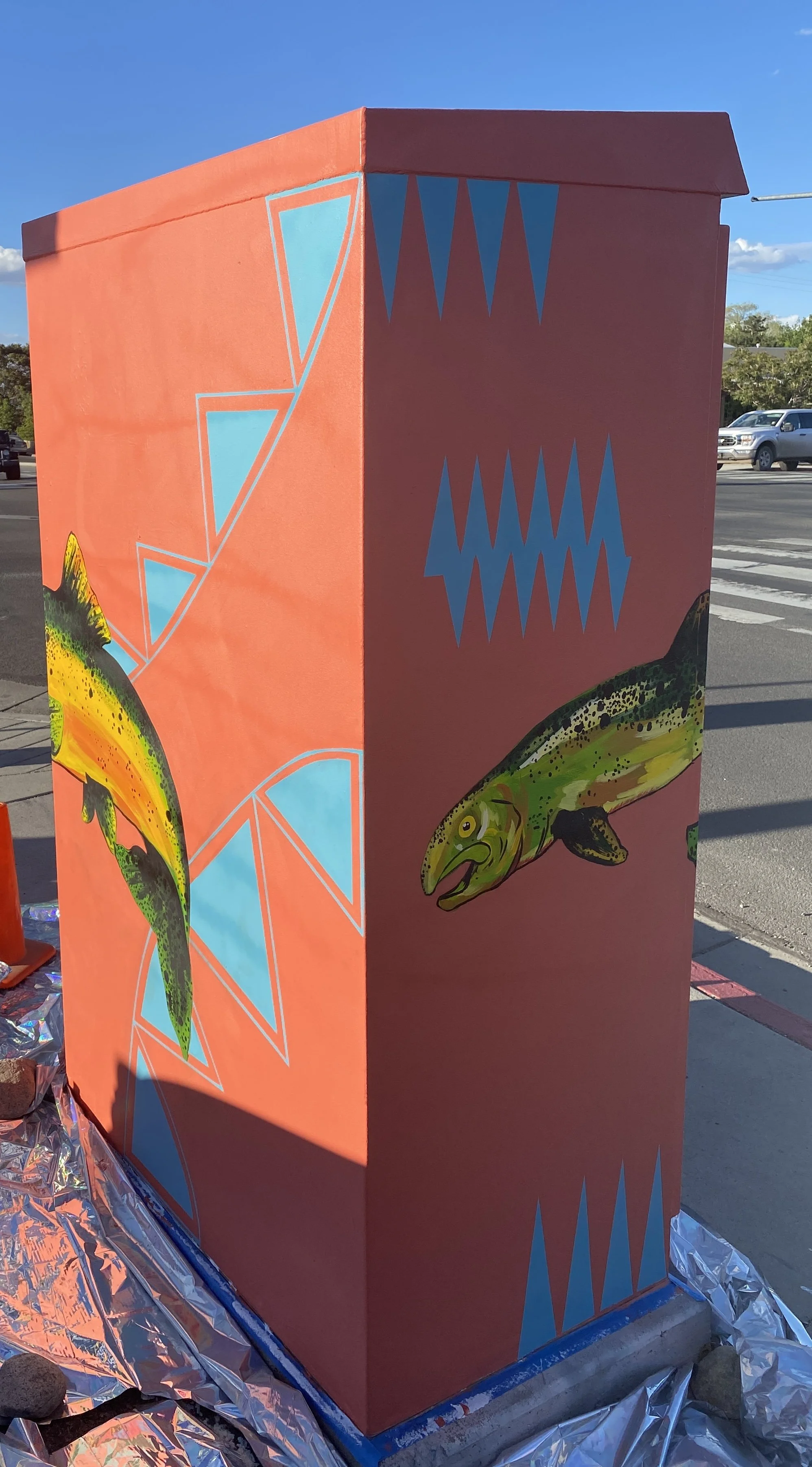Lahontan Loop - Signal Box · Acrylic on Metal · Wells Ave. & Ryland St. · Reno, NV · 44 x 26.5 x 78” · 2021**